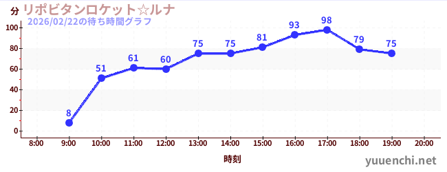 2026/02/22の待ち時間グラフ (リポビタンロケット☆ルナ)