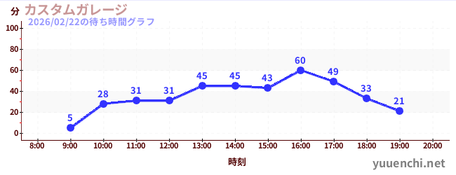 2026/02/22の待ち時間グラフ (カスタムガレージ)