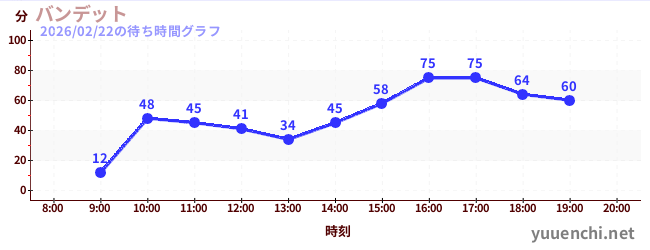 2026/02/22の待ち時間グラフ (バンジージャンプ)
