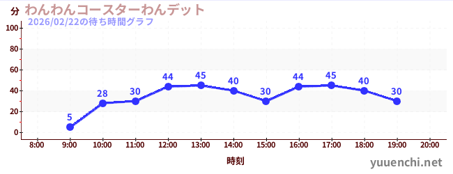 2026/02/22の待ち時間グラフ (わんわんコースターわんデット)