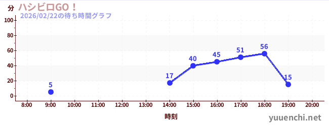 2026/02/22の待ち時間グラフ (ハシビロGO!)