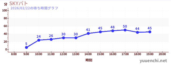 2026/02/22の待ち時間グラフ (Sky-Go-LAND)