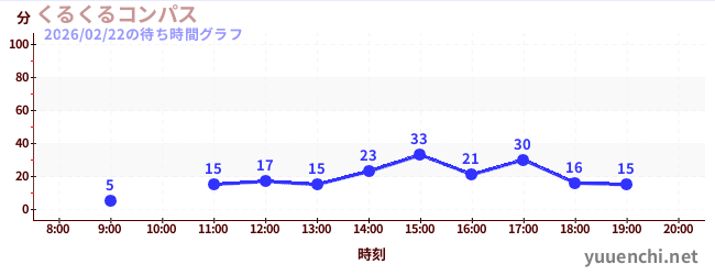 2026/02/22の待ち時間グラフ (くるくるコンパス)