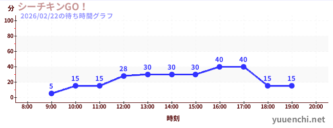 2026/02/22の待ち時間グラフ (シーチキンGO!)