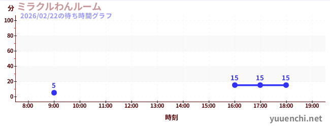 2026/02/22の待ち時間グラフ (ミラクルわんルーム)