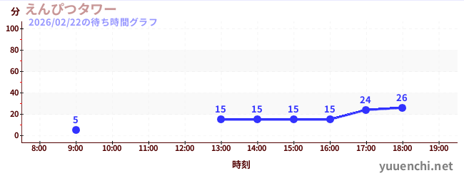 2026/02/22の待ち時間グラフ (えんぴつタワー)