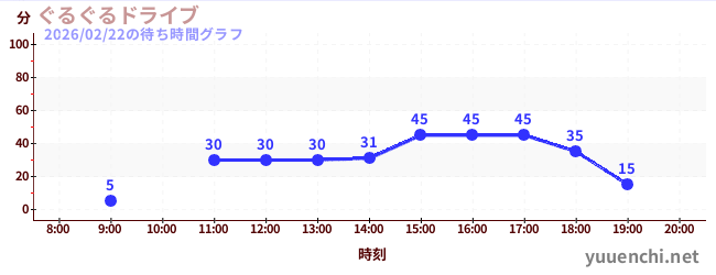 2026/02/22の待ち時間グラフ (ぐるぐるドライブ)