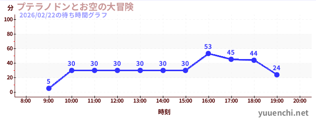 2026/02/22の待ち時間グラフ (プテラノドンとお空の大冒険)