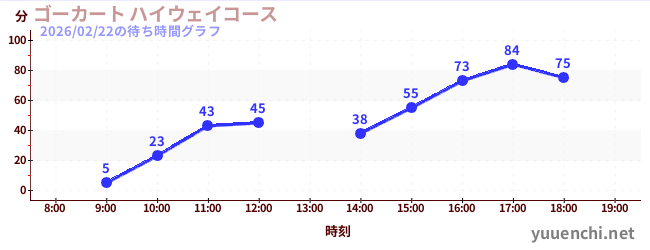 2026/02/22の待ち時間グラフ (ゴーカート ハイウェイコース)