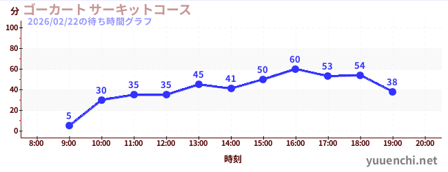 2026/02/22の待ち時間グラフ (ゴーカート サーキットコース)