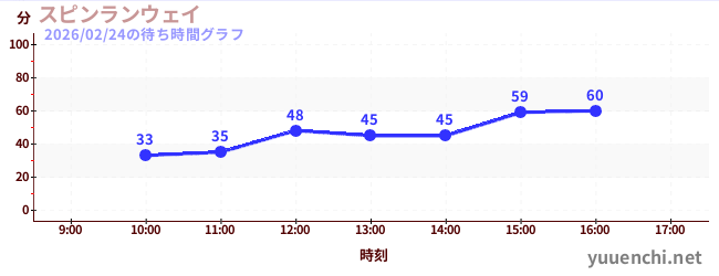 2026/02/24の待ち時間グラフ (スピンランウェイ)