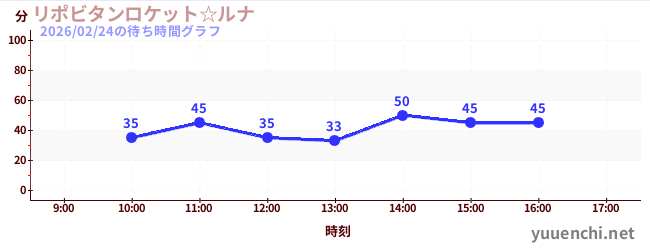 2026/02/24の待ち時間グラフ (リポビタンロケット☆ルナ)