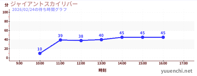 2026/02/24の待ち時間グラフ (ジャイアントスカイリバー)