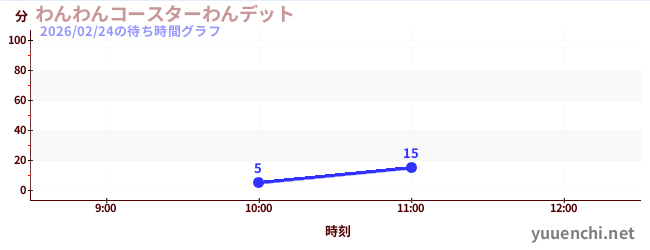 2026/02/24の待ち時間グラフ (わんわんコースターわんデット)
