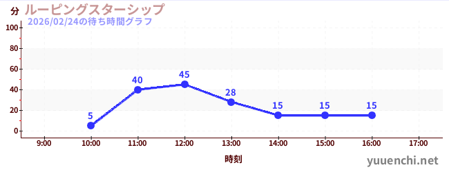 2026/02/24の待ち時間グラフ (ルーピングスターシップ)