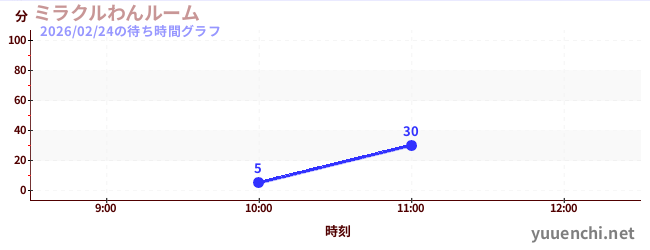 2026/02/24の待ち時間グラフ (ミラクルわんルーム)