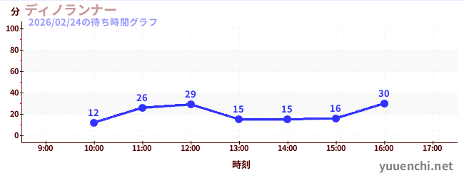 2026/02/24の待ち時間グラフ (ディノランナー)