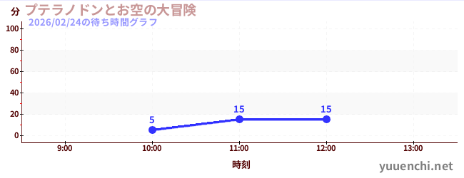 2026/02/24の待ち時間グラフ (プテラノドンとお空の大冒険)