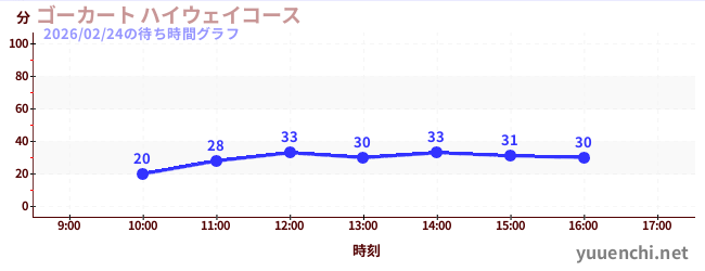 2026/02/24の待ち時間グラフ (ゴーカート サーキットコース)