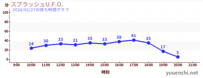2026/02/27の待ち時間グラフ (スプラッシュU.F.O.)