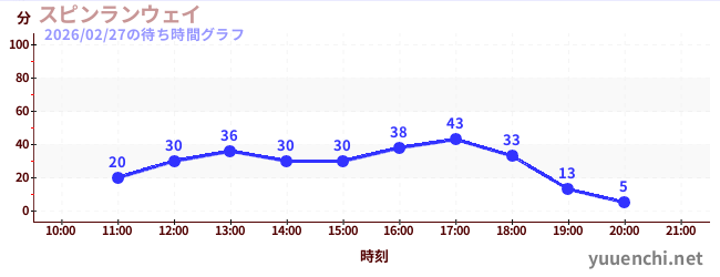 2026/02/27の待ち時間グラフ (スピンランウェイ)