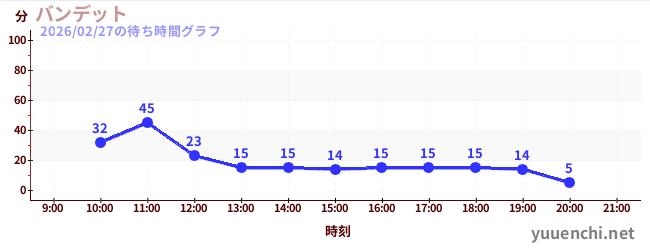 2026/02/27の待ち時間グラフ (バンジージャンプ)