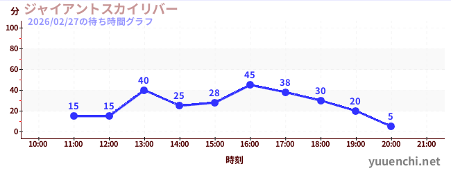 2026/02/27の待ち時間グラフ (ジャイアントスカイリバー)