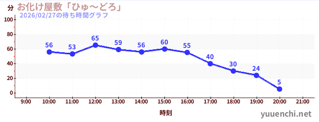 2026/02/27の待ち時間グラフ (お化け屋敷「ひゅ~どろ」)
