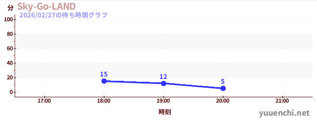 2026/02/27の待ち時間グラフ (Sky-Go-LAND)