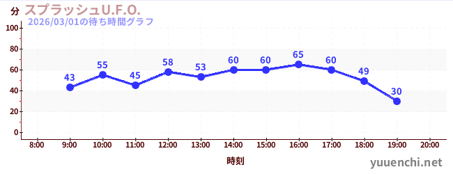 2026/03/01の待ち時間グラフ (スプラッシュU.F.O.)