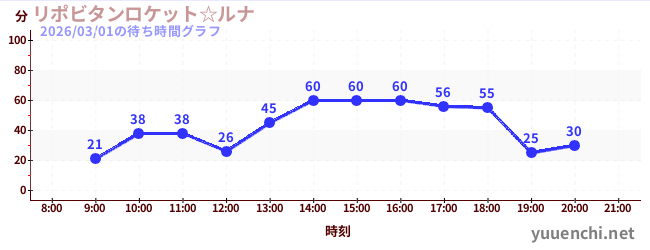 2026/03/01の待ち時間グラフ (リポビタンロケット☆ルナ)