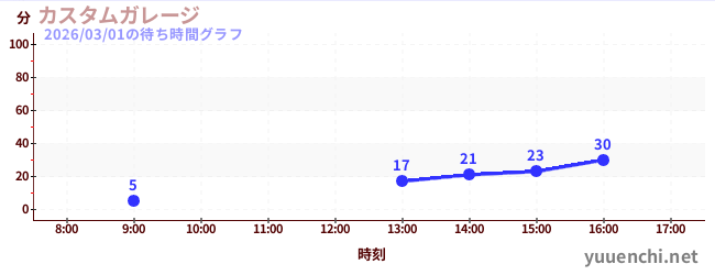 2026/03/01の待ち時間グラフ (カスタムガレージ)