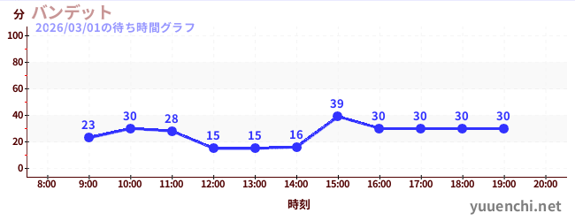 2026/03/01の待ち時間グラフ (バンジージャンプ)