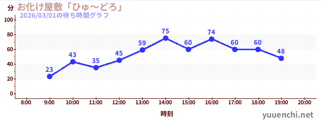 2026/03/01の待ち時間グラフ (お化け屋敷「ひゅ~どろ」)