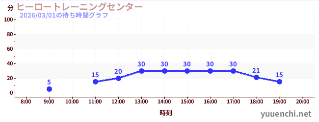 2026/03/01の待ち時間グラフ (ヒーロートレーニングセンター )