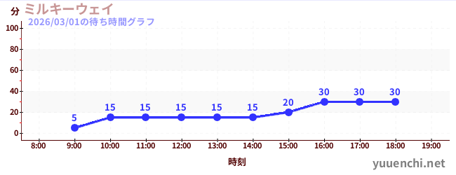 2026/03/01の待ち時間グラフ (ミルキーウェイ)