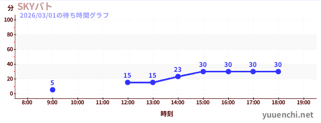 2026/03/01の待ち時間グラフ (Sky-Go-LAND)