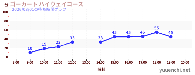 2026/03/01の待ち時間グラフ (ゴーカート ハイウェイコース)