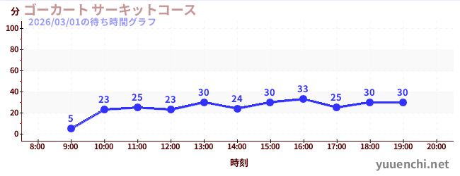 2026/03/01の待ち時間グラフ (ゴーカート サーキットコース)