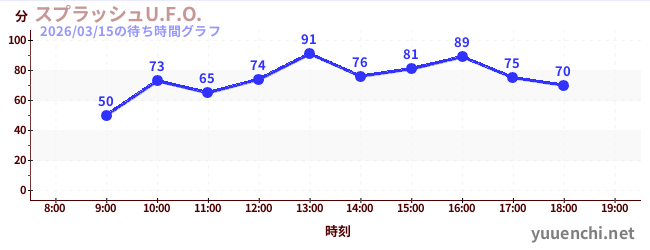 2026/03/15の待ち時間グラフ (スプラッシュU.F.O.)