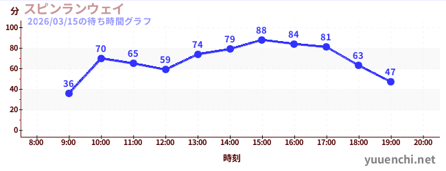 2026/03/15の待ち時間グラフ (スピンランウェイ)