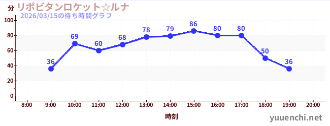 2026/03/15の待ち時間グラフ (リポビタンロケット☆ルナ)