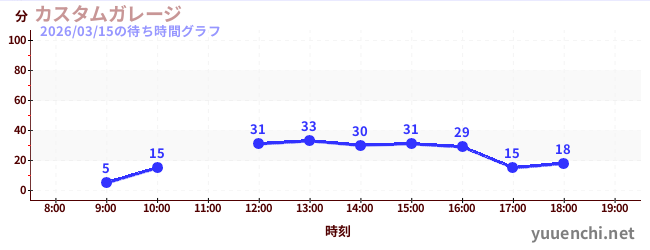 2026/03/15の待ち時間グラフ (カスタムガレージ)