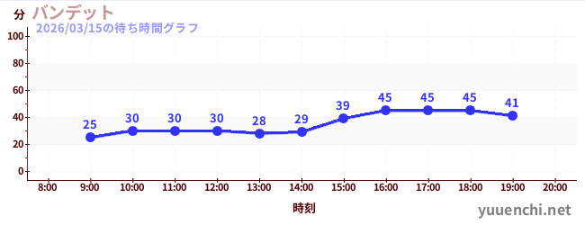 2026/03/15の待ち時間グラフ (スプラッシュバンデット)