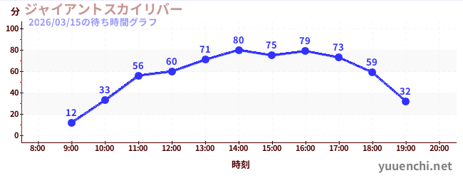 2026/03/15の待ち時間グラフ (ジャイアントスカイリバー)