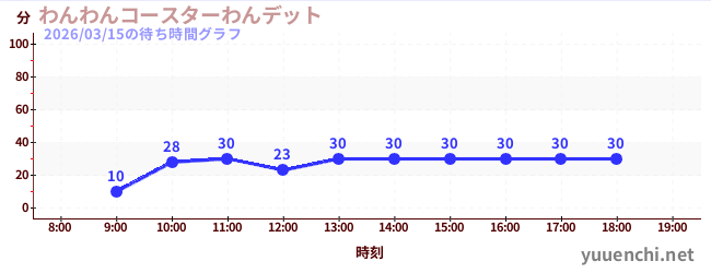 2026/03/15の待ち時間グラフ (わんわんコースターわんデット)