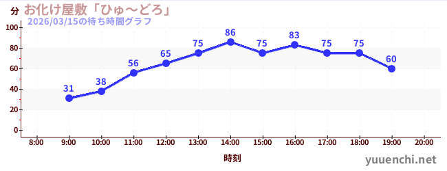 2026/03/15の待ち時間グラフ (お化け屋敷「ひゅ~どろ」)