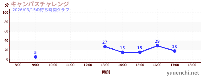 2026/03/15の待ち時間グラフ (キャンパスチャレンジ )
