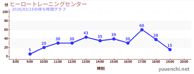 2026/03/15の待ち時間グラフ (ヒーロートレーニングセンター )
