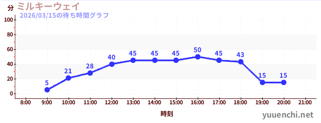 2026/03/15の待ち時間グラフ (ミルキーウェイ ペアシート)